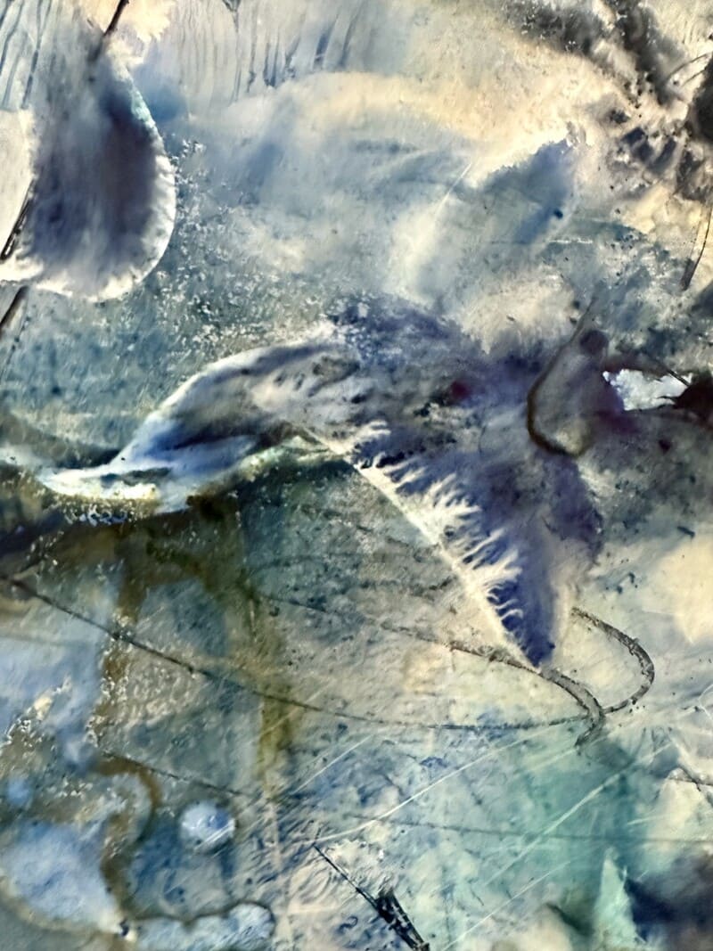 Su obra es un diálogo con lo intangible: la naturaleza salvaje de la mente y el alma humana, y el flujo constante entre lo racional y lo emocional. A través de la acuarela, construye capas que reflejan la evolución personal, resignificando lo que traemos del pasado y fusionando lo orgánico con lo abstracto. Cada trazo se convierte en una conversación íntima con el caos y la belleza del ser.
