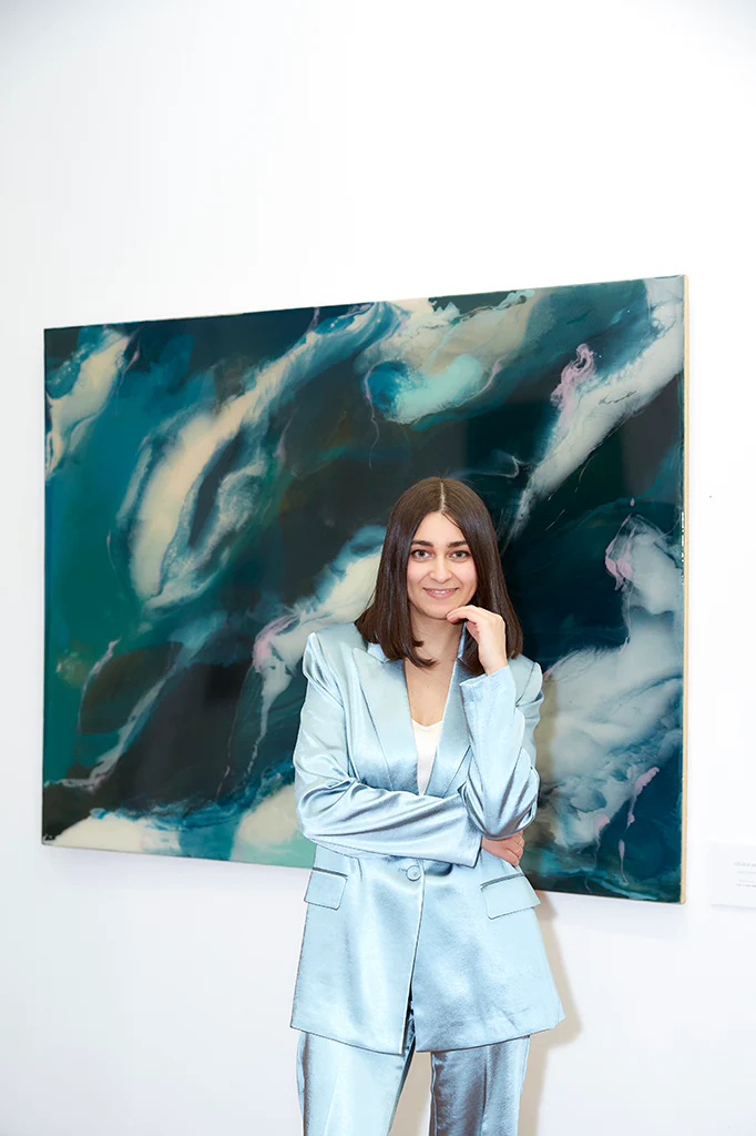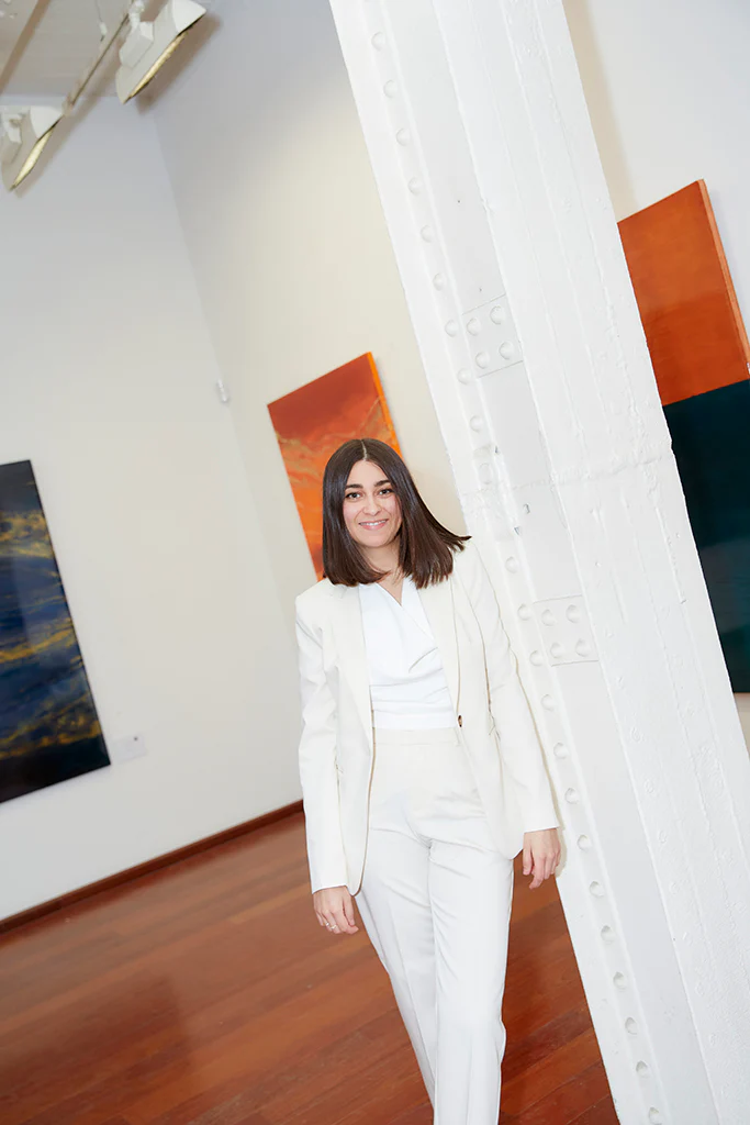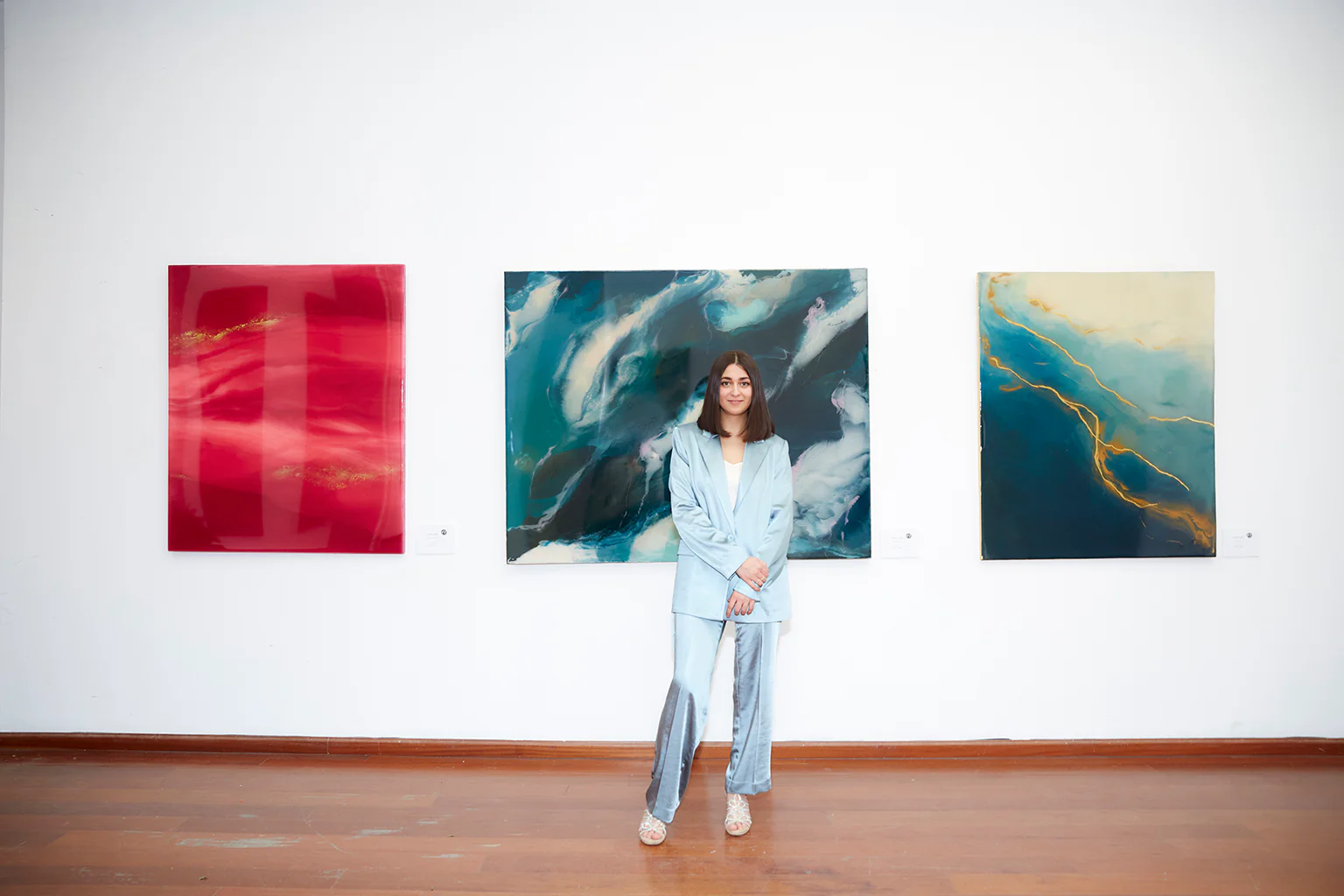 La muestra, titulada “WE ARE REVERSAL”. La artista exhibió “AFLUENCIA”, una obra de 100×100 cm con destellos de oro de 23 quilates, creada exclusivamente para la exposición.