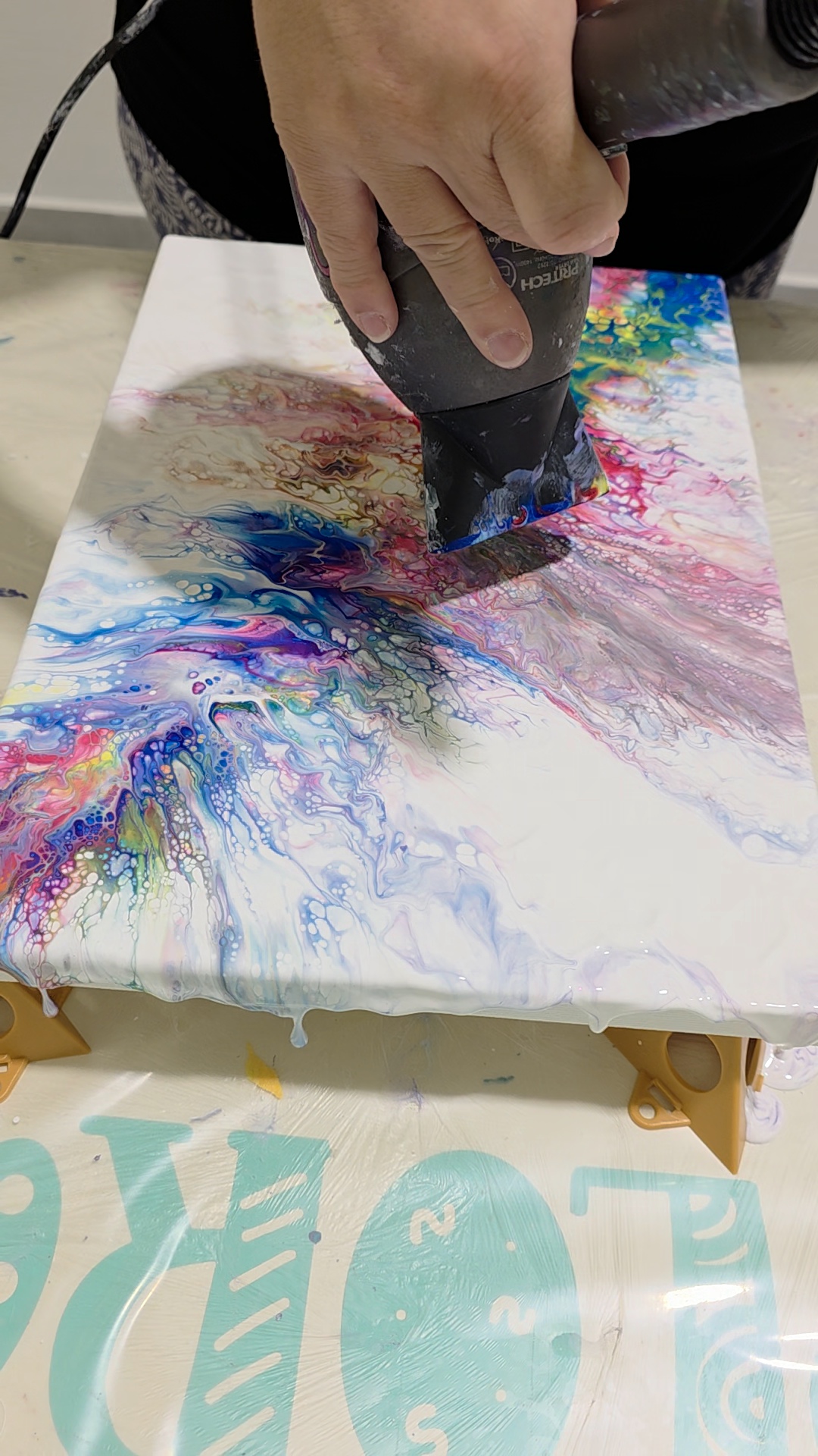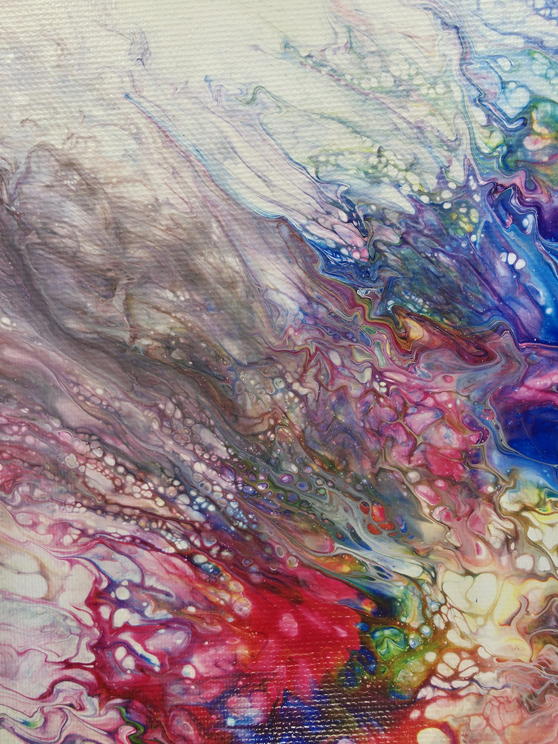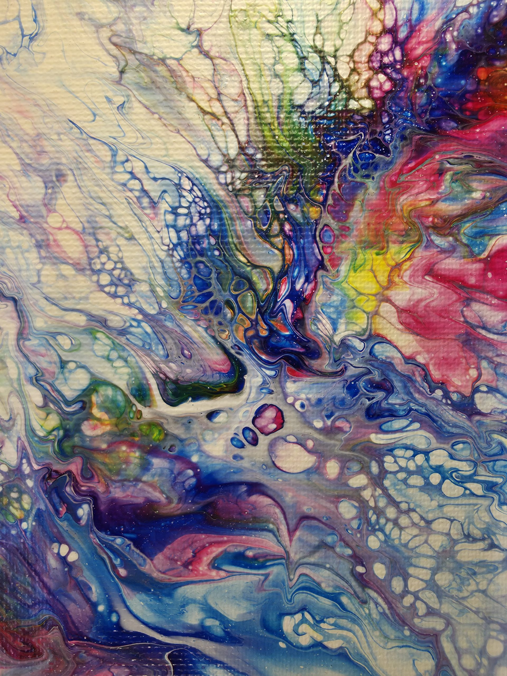 “Esta obra de arte fluido es un reflejo de la conexión entre la naturaleza y las emociones de una mujer, donde los colores vibrantes fluyen como sentimientos en libertad.