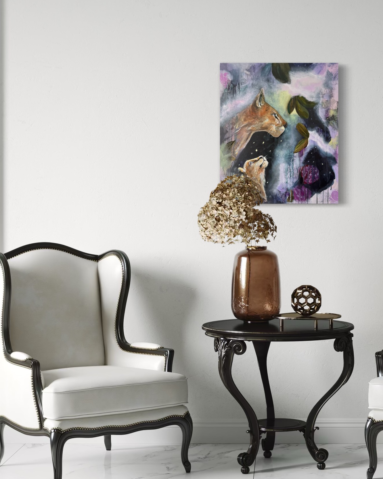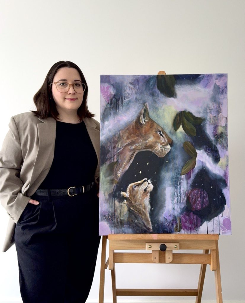 En esencia, su arte evoca empoderamiento, resiliencia y una profunda sensación de libertad. Espera que quienes contemplen sus pinturas vean reflejado su propio camino y se sientan animadas a confiar en sí mismas, abrazar su singularidad y vivir con valentía.”