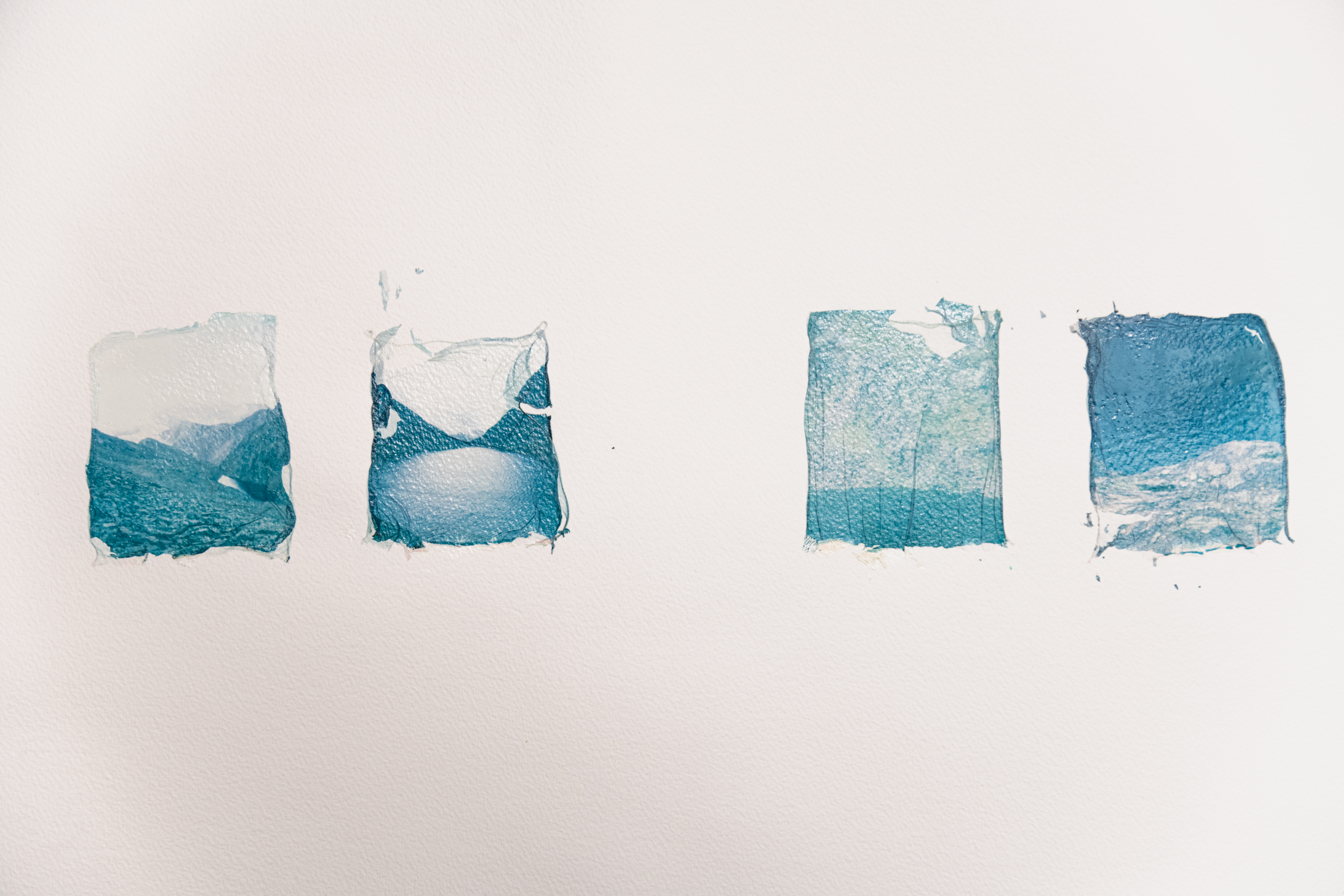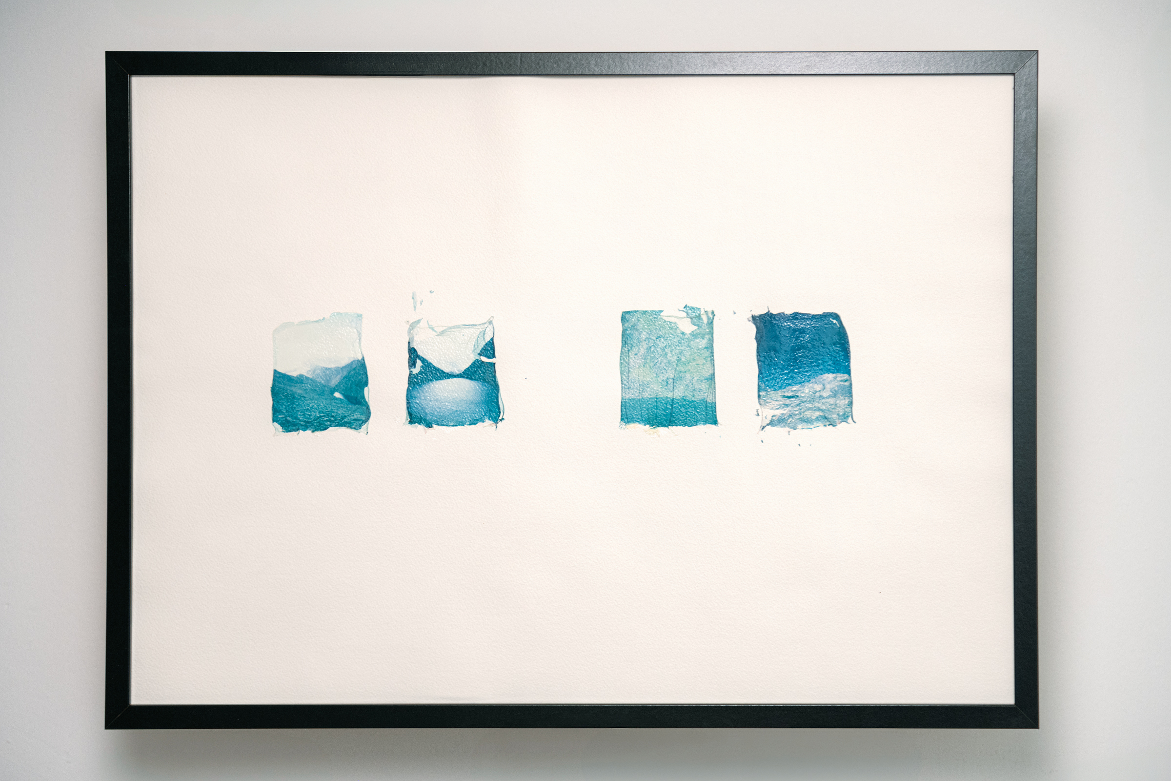 Las cuatro imágenes de esta pieza son un recorrido, una inmersión gradual en este espacio que me acoge y me envuelve. Desde la cima del **Comapedrosa**, el lago es un punto lejano, una mancha oscura en medio de la inmensidad. Un poco más abajo, la montaña lo enmarca entre sus imponentes laderas, como si lo protegiera. Más cerca aún, el agua asoma entre las paredes de roca y la vegetación que lo rodea. Y finalmente, la inmersión: solo agua, solo roca, solo presencia.